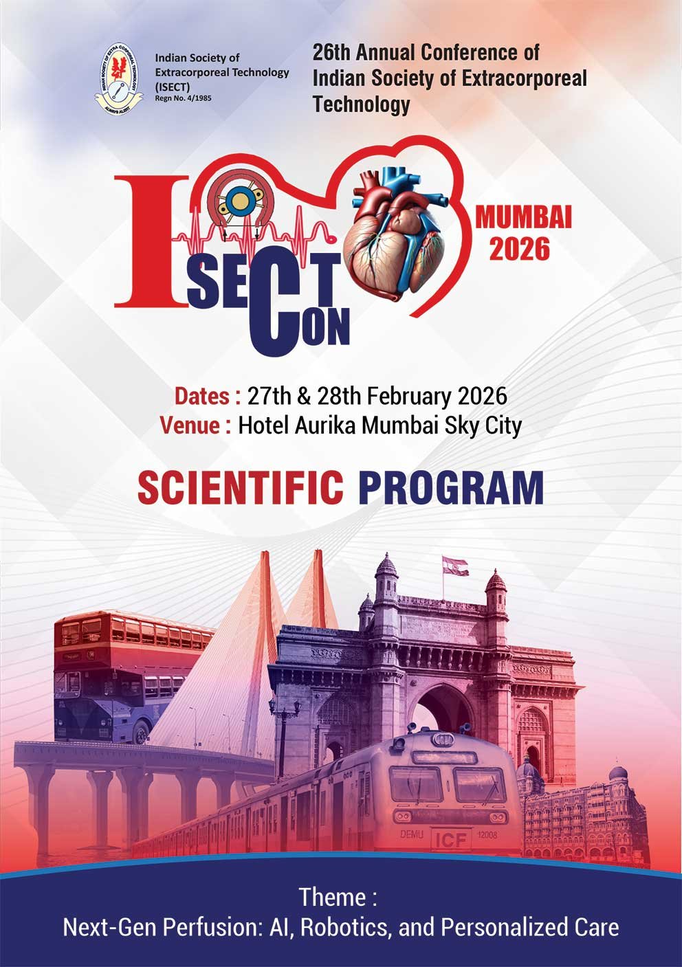 The Indian society of Extra Corporeal Technology (ISECT) is the only national, professional organisation representing all practicing Perfusionists in India. ISECT was constituted in 1983 and registered under Tamil Nadu Societies Act in 1985.